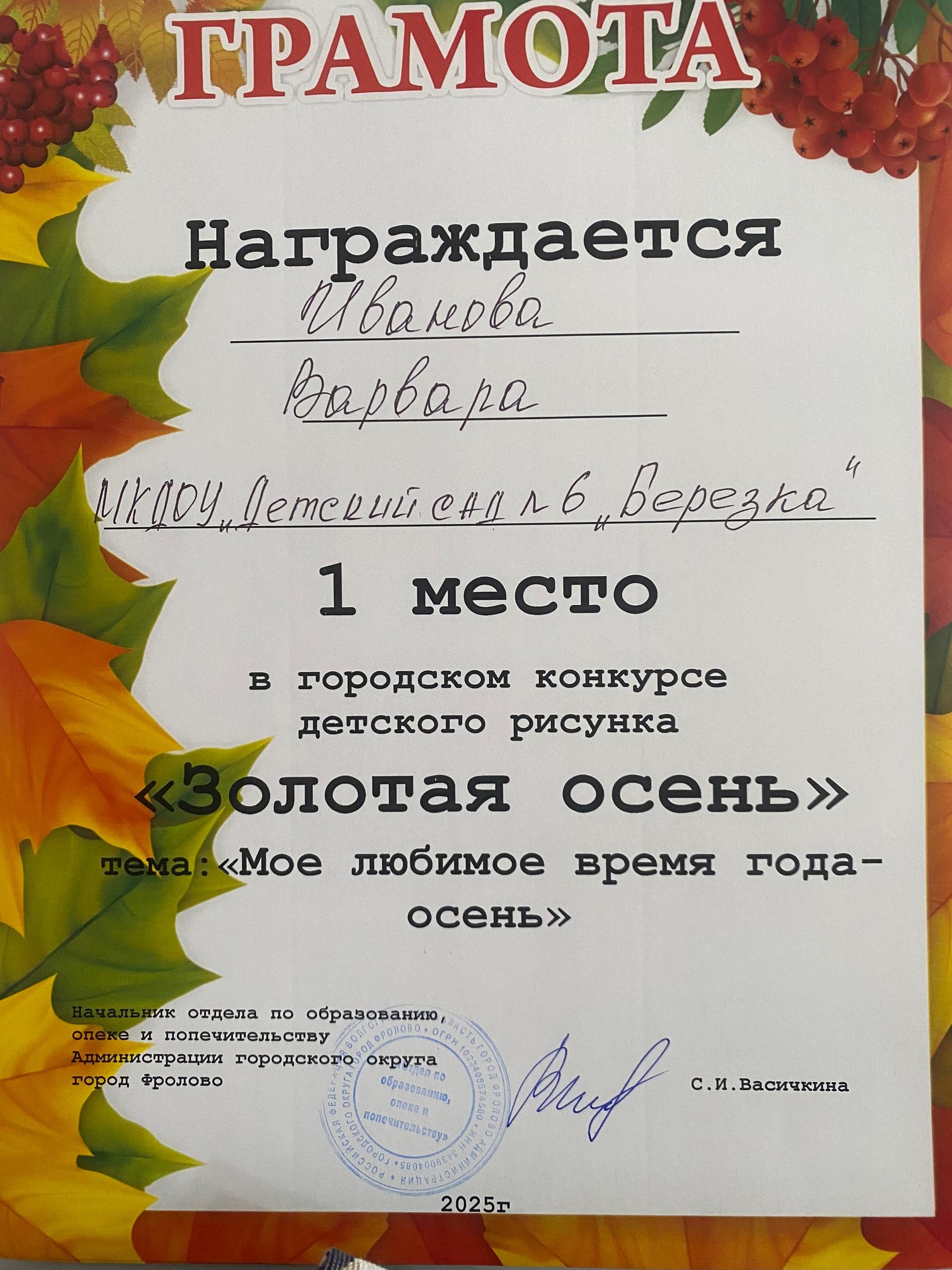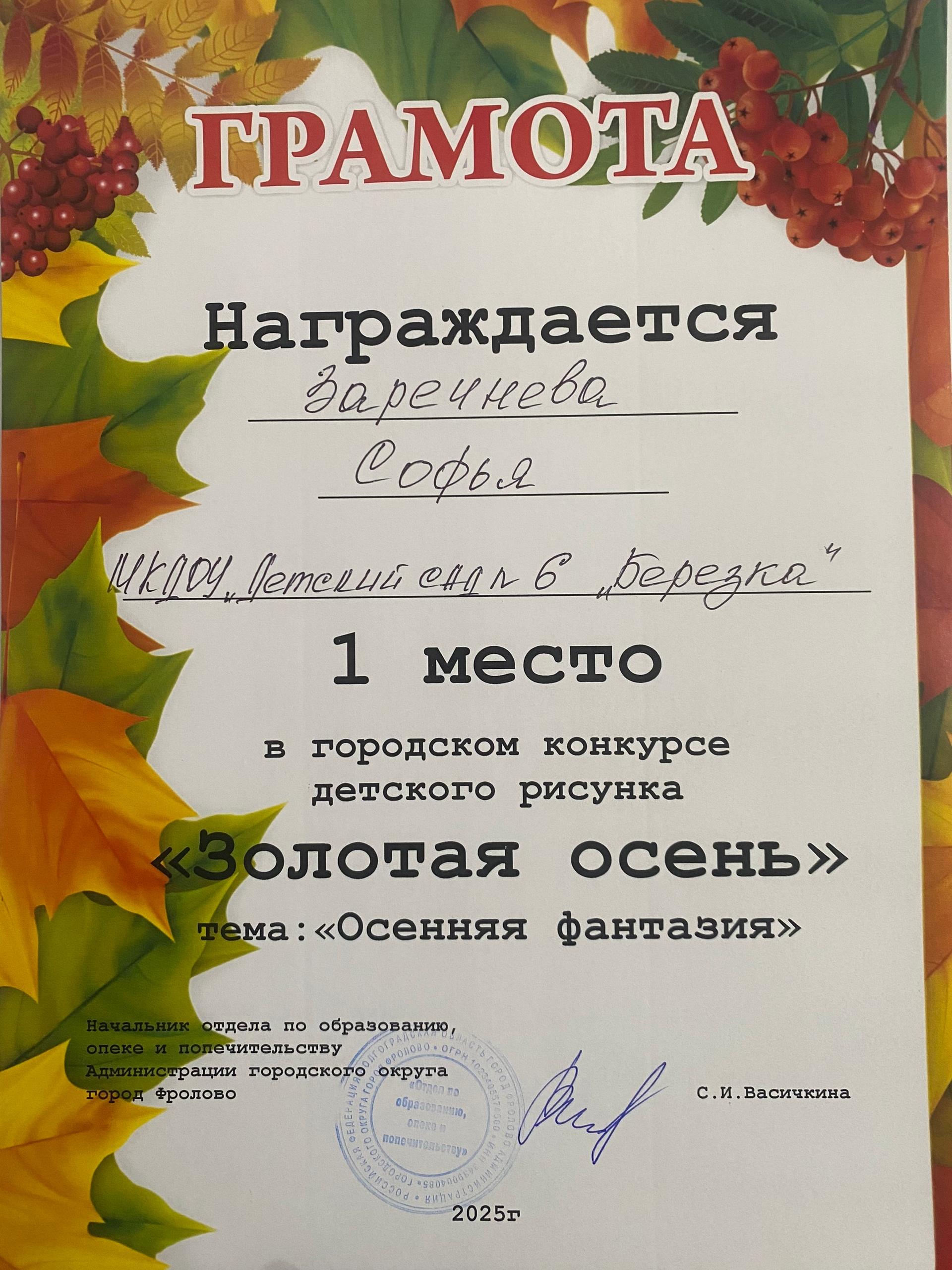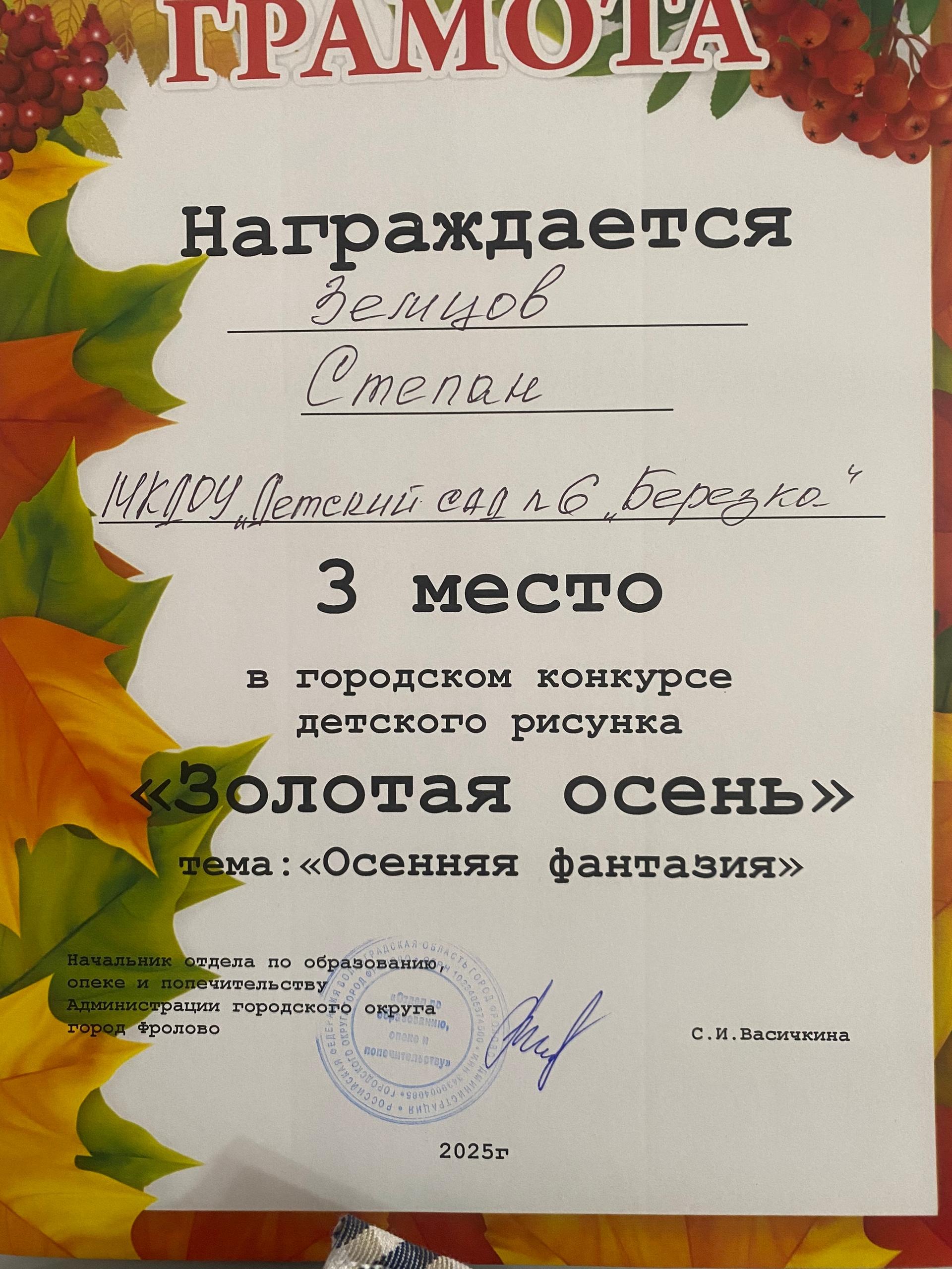 Воспитанники подготовительной группы МКДОУ "Детский сад № 6 "Березка" приняли участие в городском конкурсе детских рисунков "Золотая осень!